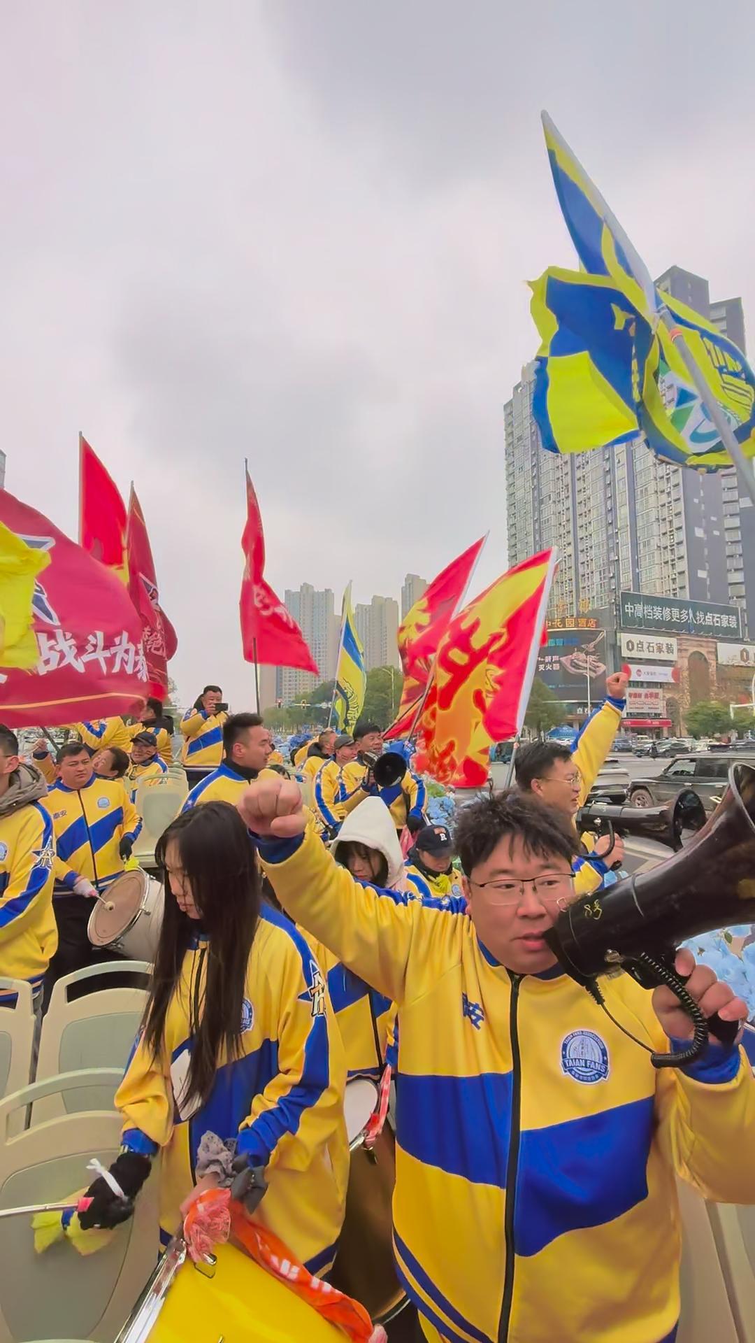 泰安队开赛当天,永州为泰安球迷安排冠军车巡游